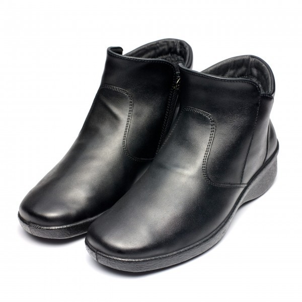 Ghete Tellus cu plenitudine crescută, corespund completitudine 9 pe grila dimensională. Fabricat din piele naturală italiană neagră, cu inserții din nubuc natural. Un branț anatomic moale care oferă confort la mers, împreună cu o talpă din poliuretan ușoară și flexibilă, fac ghetele Tellus ideale pentru fiecare zi. Modelul are fermoar pentru o încaltare ușoară. Dimensiuni branț 36-23cm, 37-23.5cm, 38-24cm, 39-25.5cm, 40-26cm, 41-26.5cm. Inaltime toc 3 cm Completitudinea pantof 9