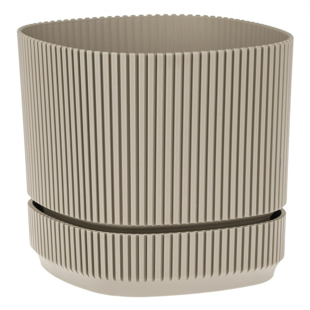 Ghiveci pentru Flori cu farfurie incorporata, design dreptunghiular, Bej, Capacitate 4.6 l, 21x21x19