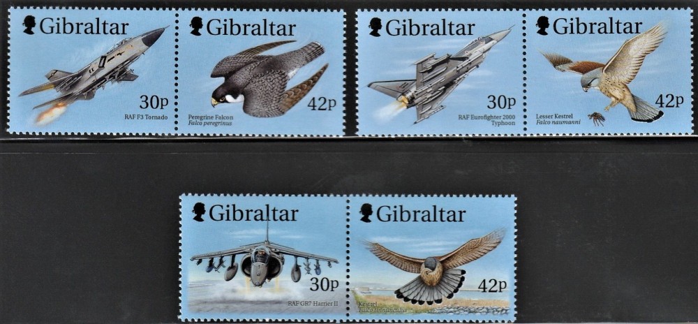 Gibraltar, fauna, pasari si avioane ( I ), 1999, perechi, MNH