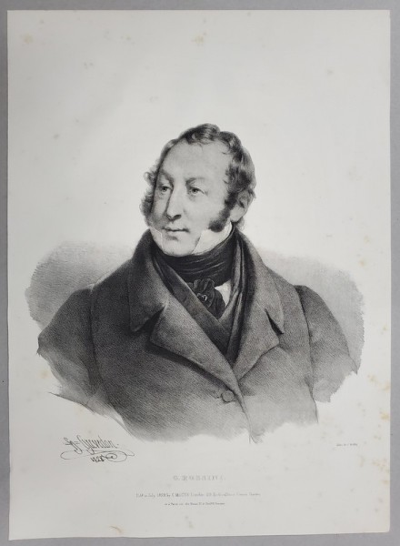 GIOACHINO ROSSINI , COMPOZITOR ITALIAN , LITOGRAFIE , DESEN de GREVEDON , litografiat de C. MOTTE , 1828