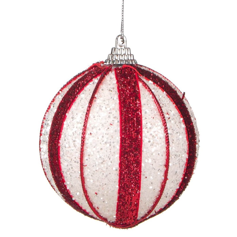 Glob Crăciun Spumă, Alb, Glitter Roșu, 8 cm