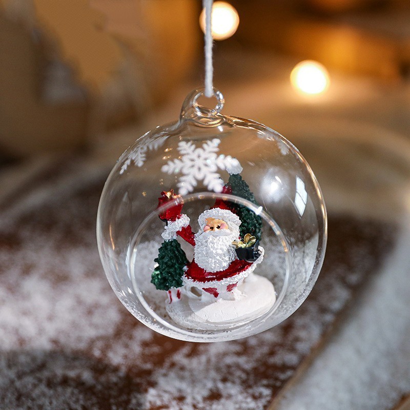 Glob pentru Bradul de Craciun, Flippy, Model Mos Craciun, Tip Pandativ, Glob Transparent Semi-Deschis, 10.5 x 9 x 9 cm, Transparent