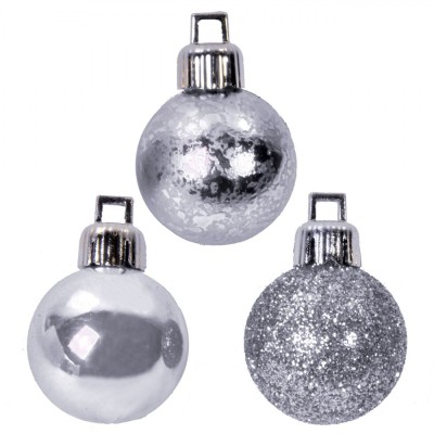 Globuri Craciun Model Universal, Set 20 Bucăți, Argintiu Mat, Strălucitor, Glitter, Plastic