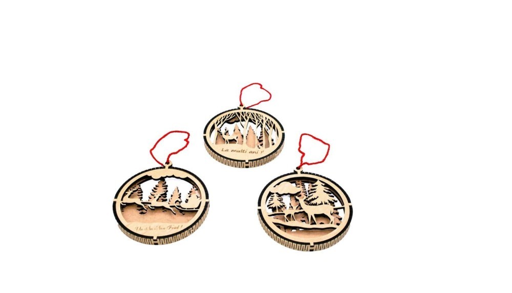 Globuri din lemn , realizate din HDF de 3 mm, se pot personaliza cu orice nume sau text doriți! Setul este format din 3 globuri .Dimensiune: 8 cm diametru.Putem grava mesajul sau inscriptia grafica pe care o doriti.Globuri personalizate realizate prin decupare si gravare cu laser. Se pot realiza modele detaliate, cu linii subțiri și contururi elaborate.Globurile de lemn decupate și gravate cu laser sunt decorațiuni elegante și personalizabile, ideale pentru Crăciun, evenimente speciale sau cadouri unice. Toate produsele noastre se pot personaliza folosind una dintre cele mai moderne metode de personalizare : gravura laser.Va sfatuim sa ne lasati mesajul detaliat care va personaliza produsul ales.Gravură personalizată – Globurile pot fi gravate cu mesaje speciale, nume, inițiale, urări de sărbători sau chiar logo-uri și simboluri personalizate. Gravura cu laser conferă un contrast frumos, evidențiind textura lemnului.Aceste globuri nu sunt doar pentru bradul de Crăciun, ci pot fi utilizate și ca etichete personalizate pentru cadouri, mărturii pentru nunți, decor pentru evenimente sau accesorii handmade. Echipa noastra va va contacta pentru detalii si clarificari.