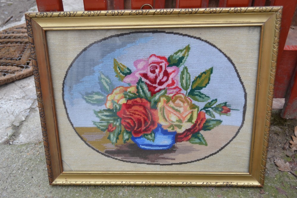 Goblen foarte frumos, "vaza cu flori". Dimensiuni 46x35 cm (53x43 cm cu rama cu tot).