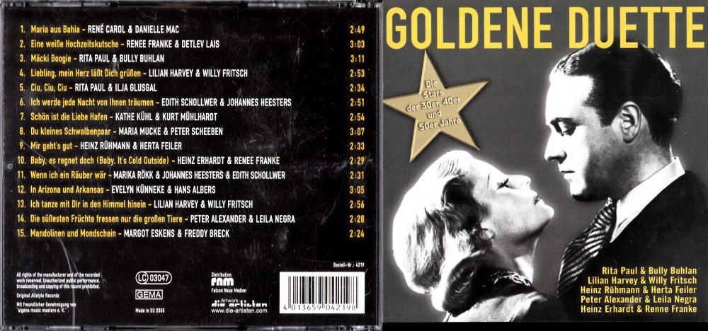 Goldene Duette, 2005, 1 CD audio. Pentru Bucuresti fac predare personala. Pentru alte localitati 11 ron taxe postale cu ramburs sau 5 ron colet simplu cu plata prin virament bancar. Pentru produse comandate in valoare de 50 ron trimit gratis colet simplu sau 5 ron cu ramburs, iar la 100 ron comanda expediez gratis cu ramburs.
