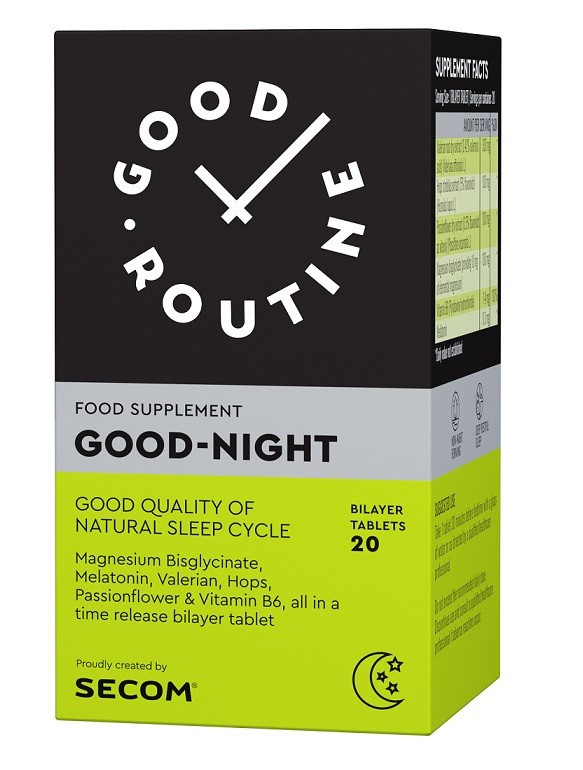 Good Night este un supliment alimentar inovativ, conceput pentru a sprijini un somn odihnitor și o relaxare completă. Fiecare comprimat conține două straturi cu eliberare controlată, care asigură o acțiune dublă, oferindu-ți o tranziție lină către un somn profund și de calitate.