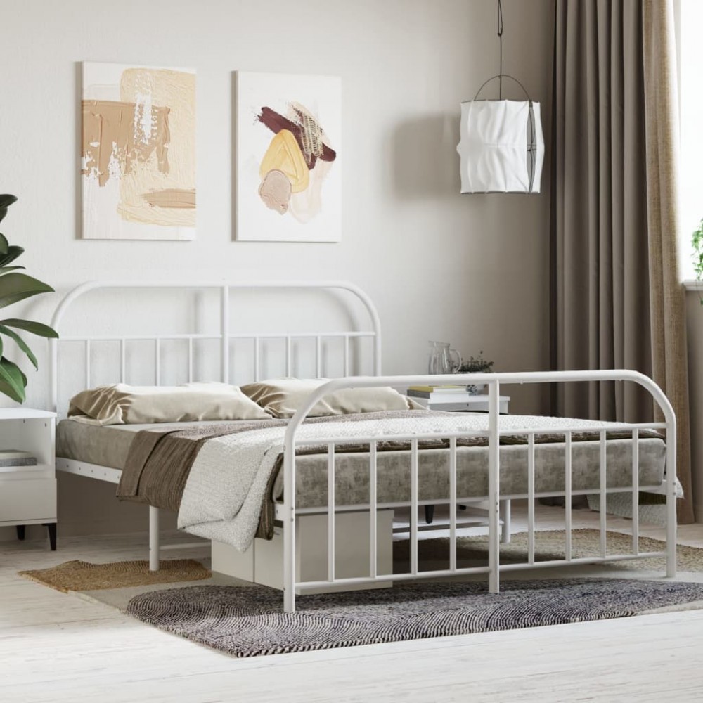 Gossi cadru de pat metalic cu tablie de cap/picioare, alb, 140x190 cm
