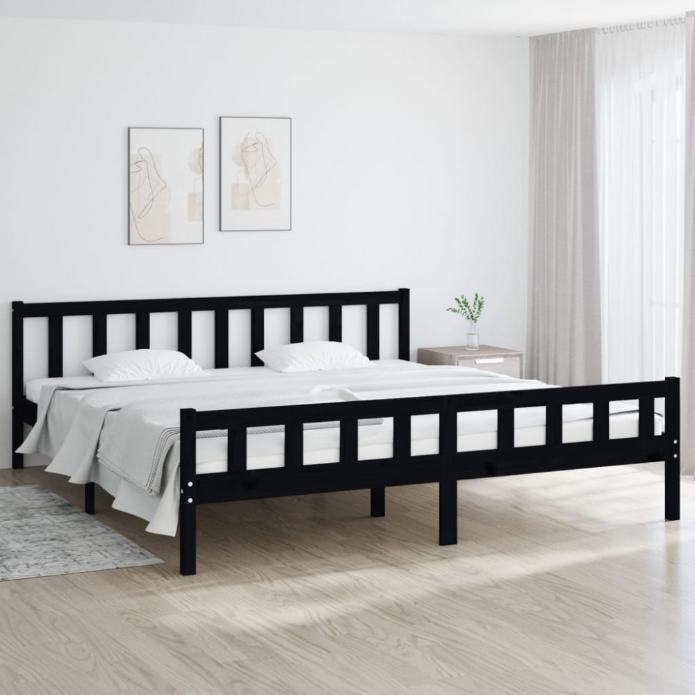 Acest cadru de pat clasic, cu un design simplu, dar atemporal, este menit să aducă un plus practic și decorativ dormitorului dvs. Lemn masiv de pin: Lemnul masiv de pin este un material natural frumos. Lemnul de pin are o granulație simplă, iar nodurile dau materialului unicitate și un aspect rustic.Cadru robust: Cadrele din lemn asigură rezistența și stabilitatea acestui cadru de pat. Somn confortabil: Acest pat din lemn poate oferi o experiență de somn confortabilă. Fie că este înclinat pe tăblie pentru a citi sau doar pentru a avea un vis dulce, acest pat vă va satisface cu siguranță nevoile. Notă:Salteaua nu este inclusă. Puteți verifica magazinul nostru pentru saltelele potrivite.Acest cadru de pat este potrivit pentru o saltea de 160 x 200 cm.Culoare: NegruMaterial cadru pat: Lemn masiv de pinMaterial șipci: PlacajDimensiuni totale cadru: 205,5 x 165,5 x 69,5 cm (L x l x î)Dimensiuni saltea recomandată: 160 x 200 cm (l x L) (salteaua nu este inclusă)Asamblare necesară: Da