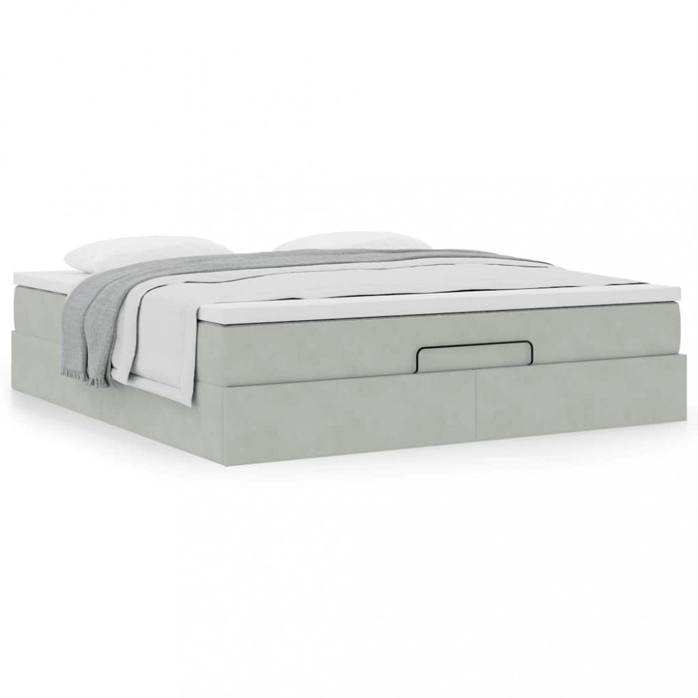 Gossi cadru de pat otoman cu saltea gri deschis 180x200cm catifea