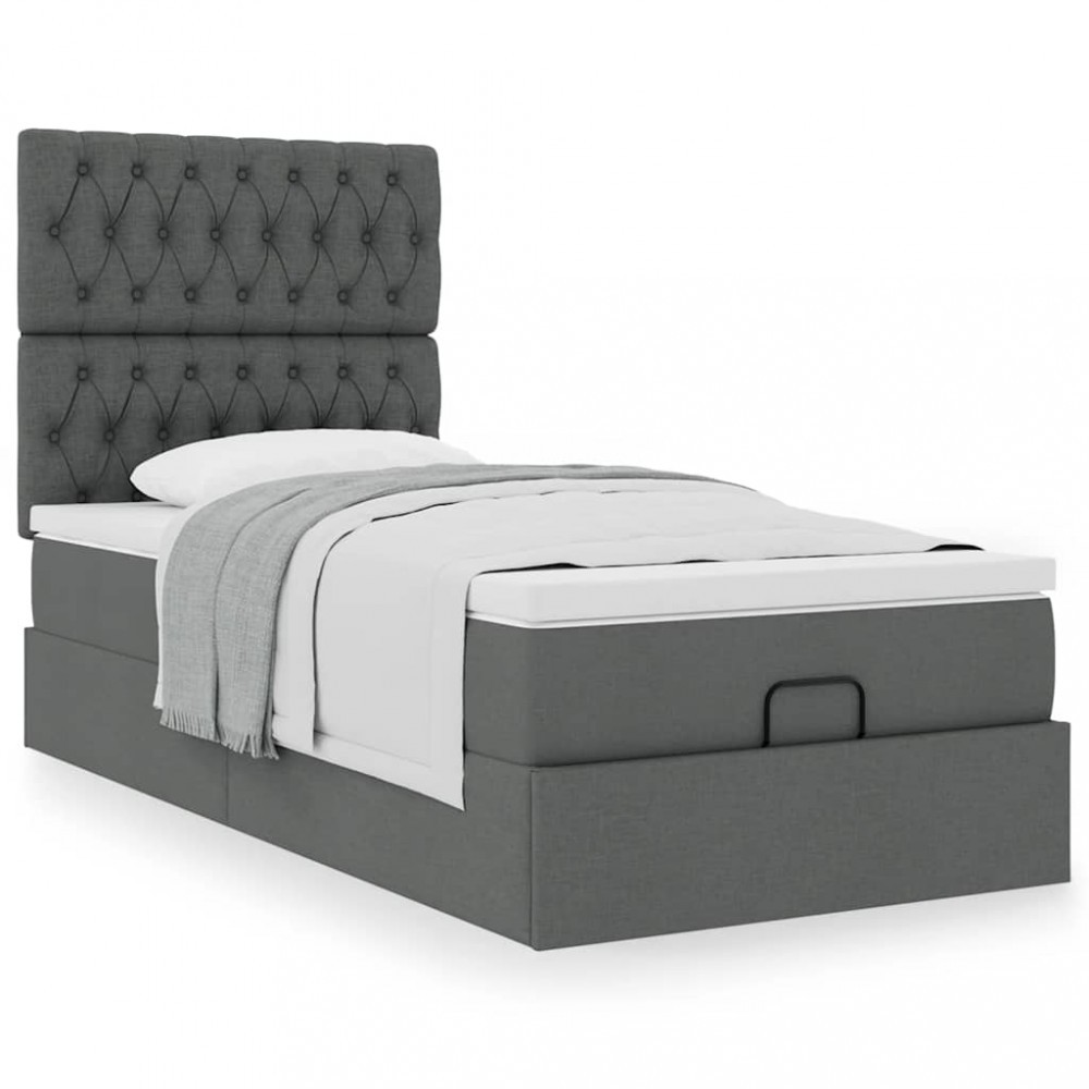 Gossi cadru pat otoman cu saltea tesatura gri inchis 90x200 cm