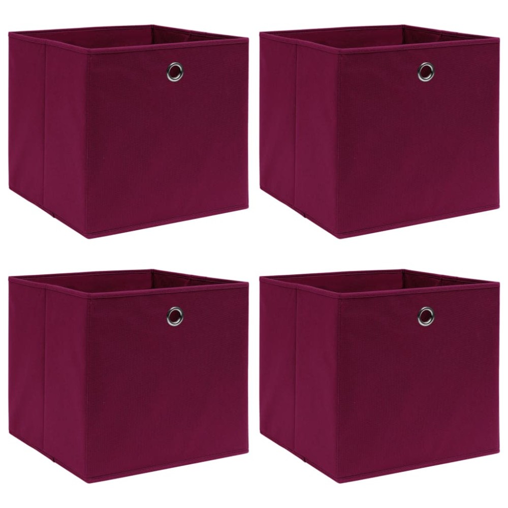 Gossi cutii depozitare, 4 buc., rosu inchis, 32x32x32 cm, textil