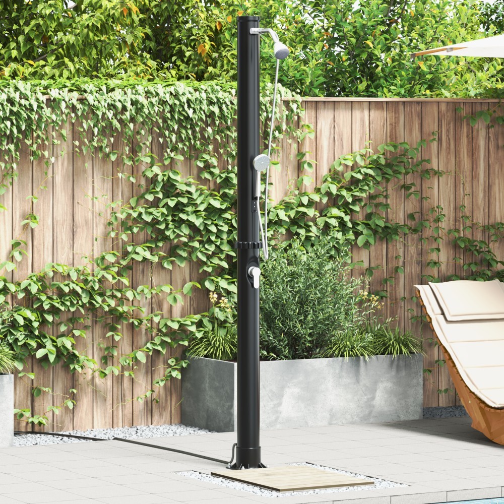 Acest duș solar pentru exterior îmbină funcționalitatea cu un aspect modern, fiind o alegere super pentru grădina ta, oferind igienă și confort în zilele însorite. Designul său elegant se potrivește super lângă piscină sau în grădină, oferind un duș refreshing pentru cei care iubesc aerul liber.Înălțime Reglabilă: Ajustează înălțimea dușului pentru confortul tău.Construcție Robustă: Fabricat din plastic sintetic și metal, rezistă la diferite condiții afară.Funcții Prietenoase cu Utilizatorul: Include un cap de duș portabil și furtun detașabil pentru utilizare simplă, fie că vrei o clătire rapidă sau un duș relaxant.Design Compact: Forma cilindrică netedă arată bine și se potrivește în locuri mai strânte lângă piscină și în grădini.Apă Inovatoare: Robinetul integrat face obținerea apei ușoară, perfect pentru a rămâne curat și a te bucura de dușuri refreshing în zilele călduroase. Culoare: Negru Formă: CilindricăMaterial: Plastic SinteticFinisaj: Mat Interior/Exterior: Doar pentru ExteriorCapac Inclus: NuBaterii Incluse: NuNumăr Maxim de Oameni: 1Dimensiuni: 16.5 x 16.5 x 217 cm (L x l x î)Scară: NuBrand: vidaXLLivrarea Conține: Duș exterior cu robinet și furtunAsamblare Necessară: DaNumăr Recomandat de Oameni pentru Asamblare: 2SKU: 42003409EAN: 8721158855510
