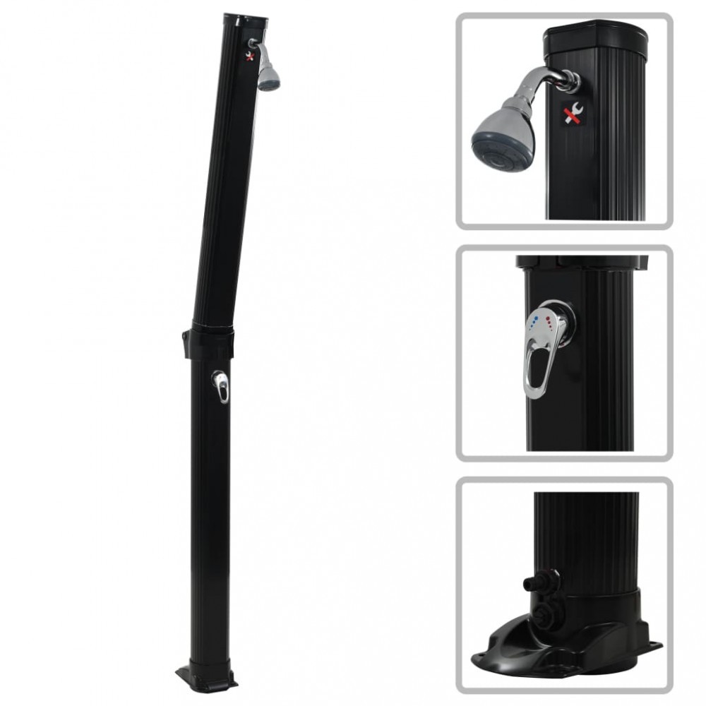 Bucurați-vă de un duș cu apă caldă lângă piscină sau în grădină cu acest duș solar practic! Acesta folosește energia solară pentru a încălzi apa. Este prevăzut cu un rezervor de 23 L. Acest duș de exterior este realizat din PVC, care îl face durabil și nu conține niciun component chimic dăunător. Corpul de culoare neagră contribuie la absorbția rapidă a energiei solare în zilele însorite. Apa se poate încălzi până la 62°C. Dușul de exterior este prevăzut cu o setare de temperatură practică, ce vă permite să controlați cu ușurință apa fierbinte sau apa rece. În plus, poate fi conectat la orice furtun de grădină standard fără a fi necesare alte accesorii de instalare. Dușul de piscină compact este pliabil, fiind ușor de transportat și depozitat. Produsul necesită asamblare. Notă: Șuruburile de montare sunt incluse.Culoare: NegruMaterial: PVC rezistent la UVDimensiuni bază: 23 x 15 cm (L x l)Înălțime: 214 cmCapacitate apă: 23 LTemperatură apă: Până la 62°CPresiune apă: Până la 3,5 bariFolosește energie solară pentru încălzirea apeiSetare de temperatură practică pentru a controla cu ușurință apa fierbinte sau apa receSe conectează la orice furtun de grădină standard, fără a fi necesare alte accesorii de instalarePliabil pentru a fi ușor de depozitat și transportatȘuruburi de montare incluse