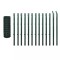 Acest euro gard poate fi folosit ca gard obișnuit, decorațiune sau protecție pentru păsări de curte, căței sau structuri în grădină, la fermă, pentru transport, structuri industriale etc.Sârma cu înveliș din PVC oferă o rezistență bună la intemperii, coroziune și raze UV, asigurând astfel o utilizare pe termen lung.Setul de țăruși pentru gard euro este simplu și rapid de instalat. Eurogardul acoperit cu PVC vine complet cu stâlpi și accesorii de instalare, inclusiv capace pentru stâlpi, suporturi de sârmă și șuruburi.Material: Sârmă din oțel învelită cu PVC Lungime gard: 25 mÎnălțime gard: 0,8 mDimensiuni ochi plasă: 76 x 63 mm Diametru sârmă: 1,8 / 2,2 mm (sârmă din oțel de 1,8 mm, învelită cu PVC de 2,2 mm)Diametru stâlp: 34 mm Înălțime stâlp drept: 1,25 mÎnălțime stâlp de susținere: 1,15 m