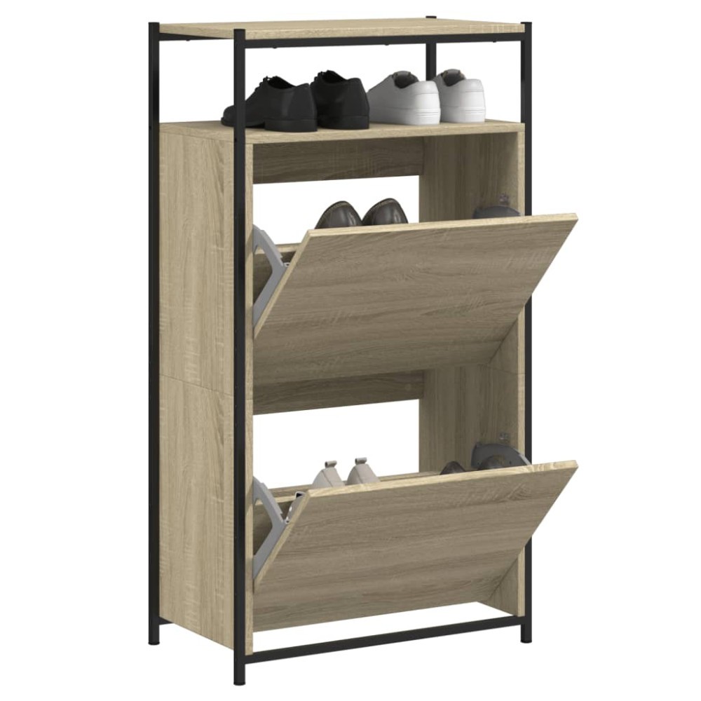 Acest dulap pentru pantofi este o alegere excelentă pentru a vă depozita pantofii într-un mod organizat, în special pentru spațiile înguste și mici, datorită designului său compact. Material durabil: Lemnul prelucrat este de o calitate excepțională, cu suprafață netedă, prezentând durabilitate, stabilitate și rezistență la umiditate.Spațiu amplu de depozitare: Acest suport pentru pantofi are 1 raft și 2 sertare rabatabile, oferind spațiu amplu pentru a vă păstra pantofii la îndemână și bine organizați.Blat practic: Blatul robust al dulapului cu pantofi este ideal pentru expunerea obiectelor decorative, ramelor foto sau plantelor în ghiveci.Design care economisește spațiu: Dulapul de depozitare subțire, pentru pantofi, este proiectat pentru a se potrivi perfect în spații mici, cum ar fi la intrare, pe hol, în dormitor, etc. Avertisment:Pentru a preveni răsturnarea acestuia, acest produs trebuie utilizat cu dispozitivul de atașare pentru perete furnizat.Culoare: Stejar sonomaMaterial: Lemn prelucratDimensiuni: 60 x 34 x 112 cm (l x ad. x î)Greutate maximă suportată: 50 kgAsamblare necesară: DaLegal Documents:Mai multe detalii despre prevenirea răsturnării mobilierului tău pot fi găsite aici