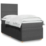 Gossi pat box spring cu saltea, gri inchis, 80x200 cm, textil
