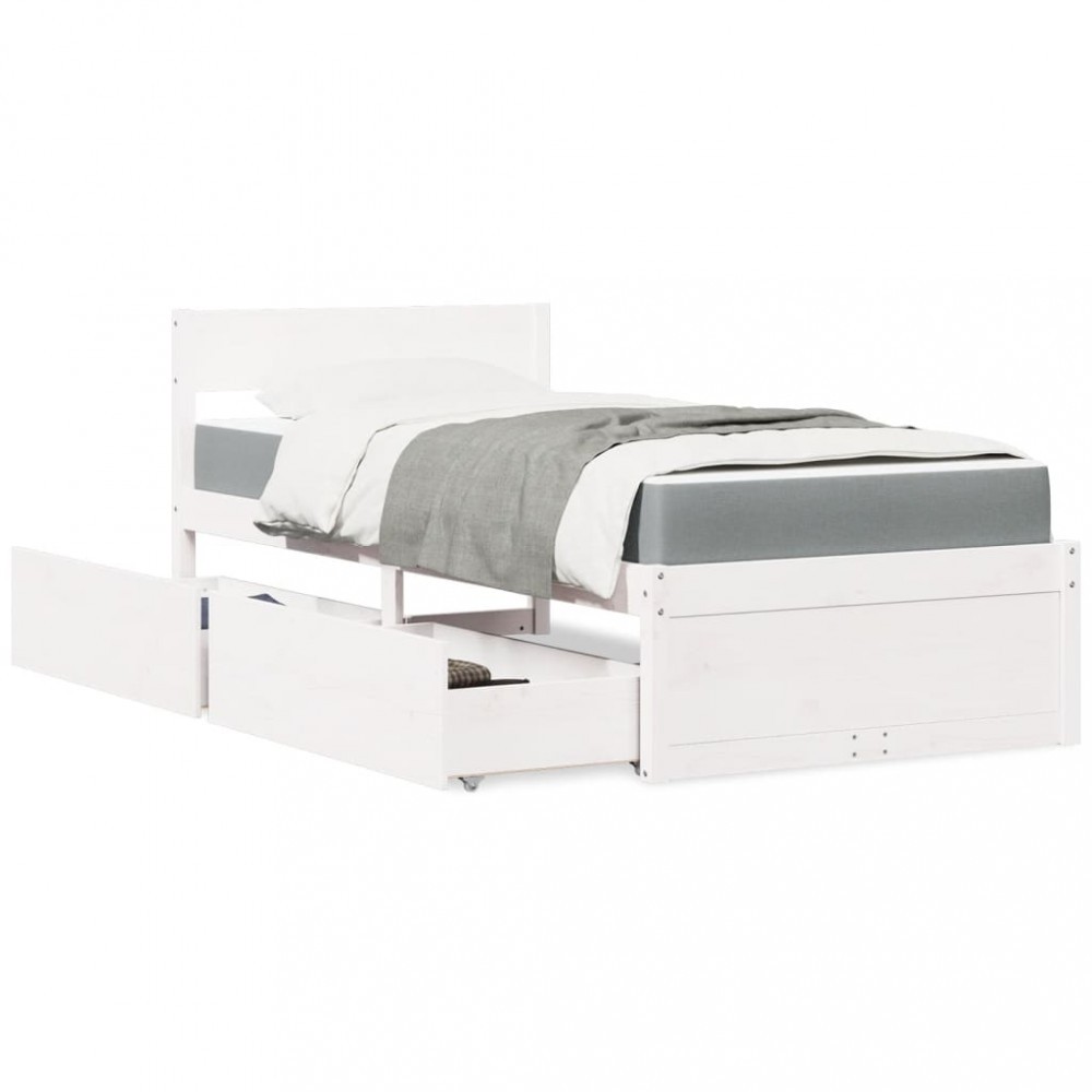 Gossi pat cu sertare si saltea, alb, 90x190 cm, lemn masiv pin