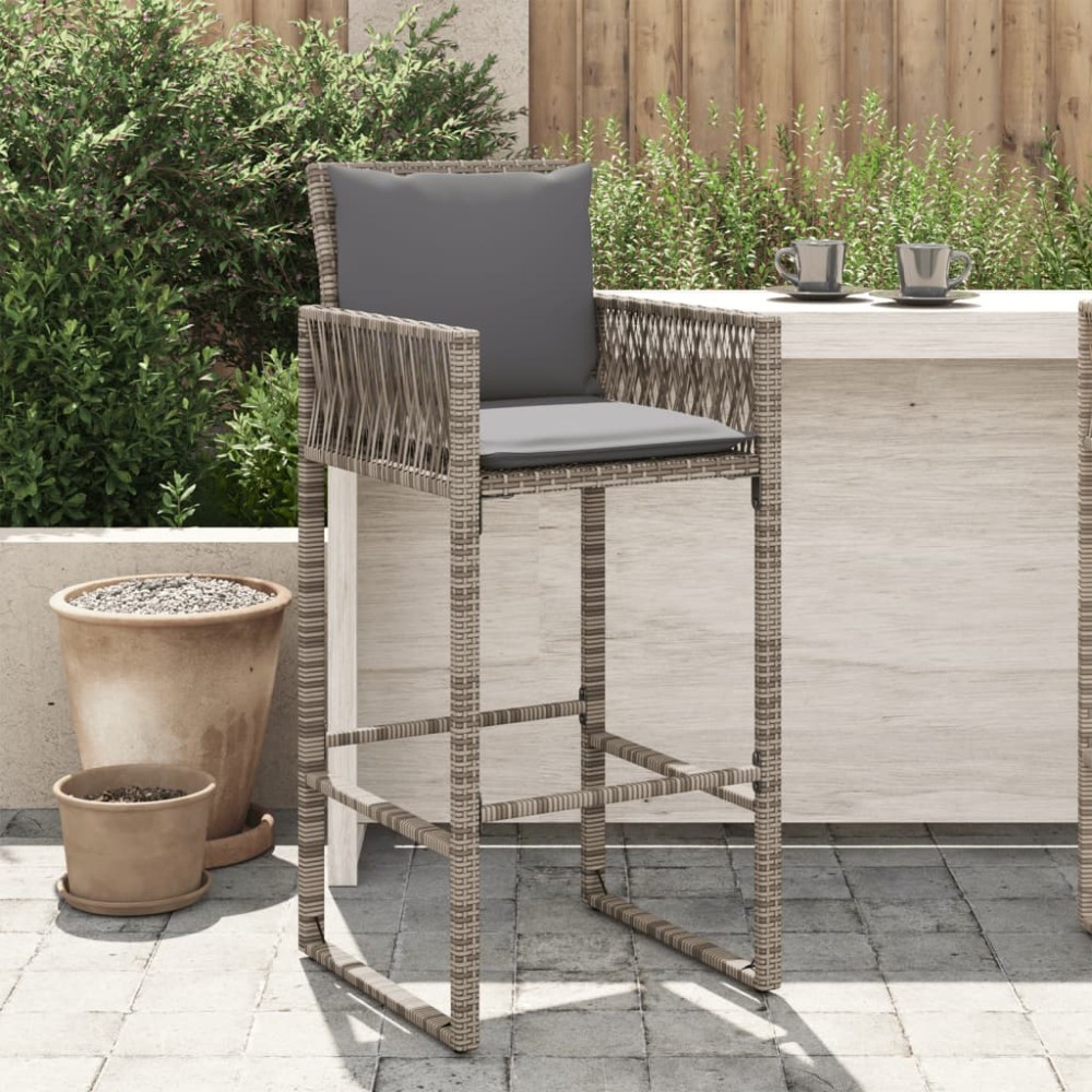 Gossi scaune de bar pentru gradina, cu perne, 2 buc., gri, poliratan