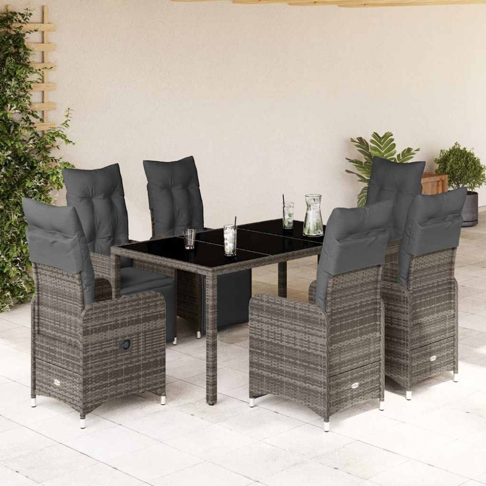 Gossi set bistro de gradina cu perne, 7 piese, gri, poliratan
