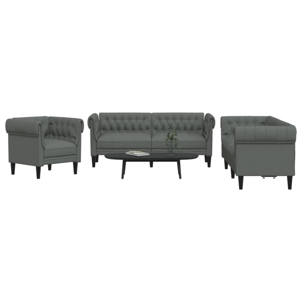 Gossi set de canapele, 3 piese, gri inchis, textil