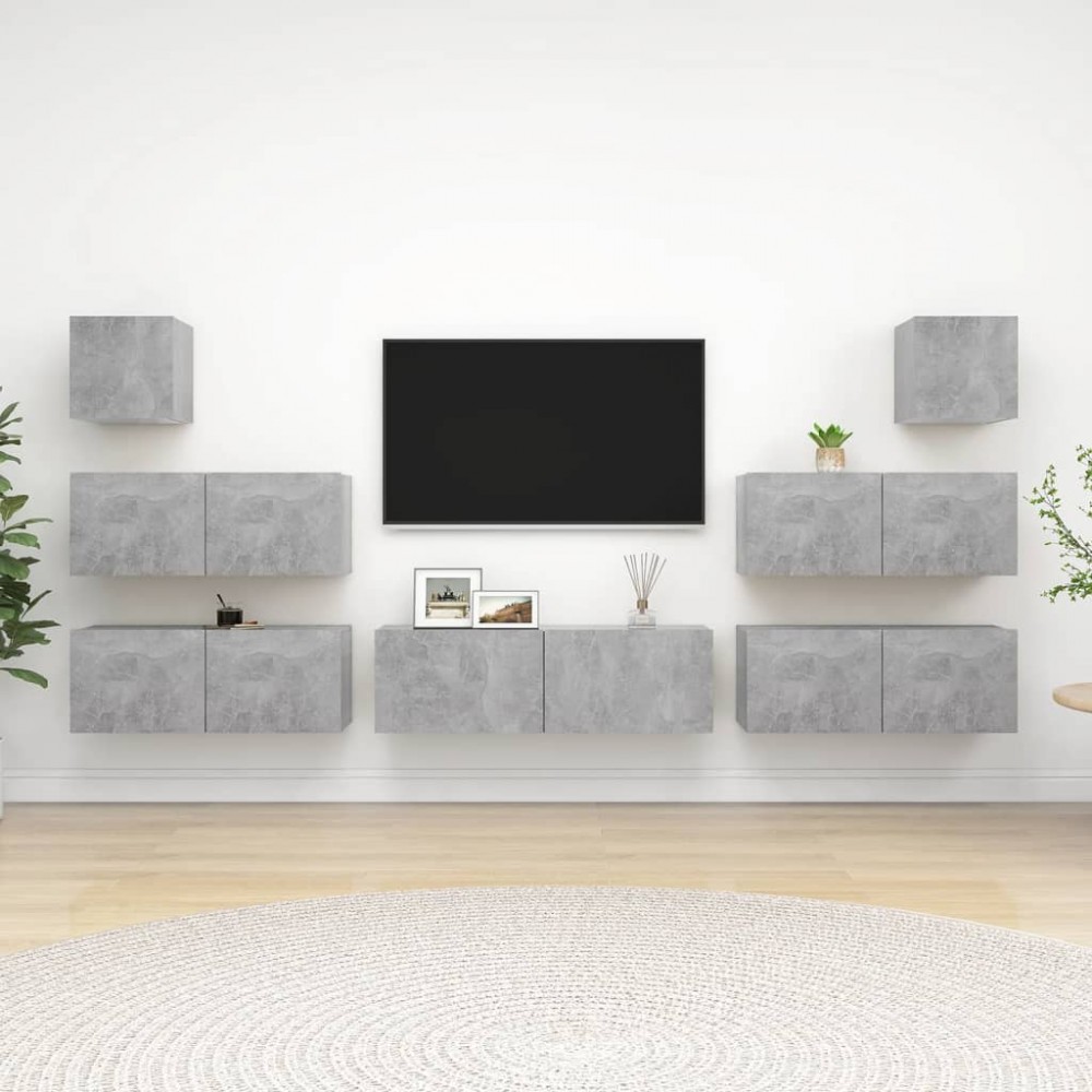 Gossi set de dulap tv, 7 piese, gri beton, lemn prelucrat