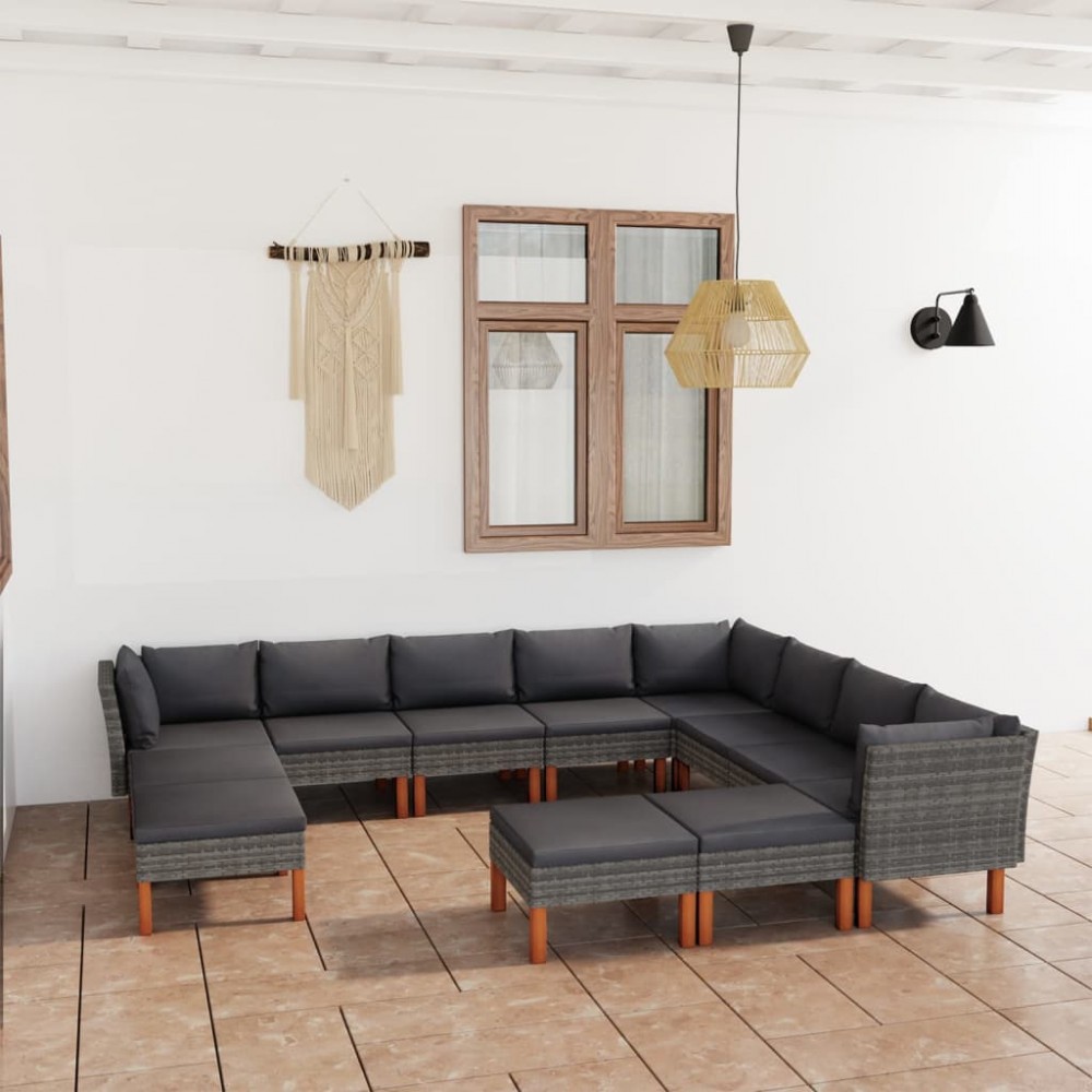 Gossi set mobilier de gradina cu perne, 12 piese, gri, poliratan