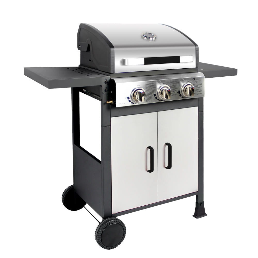 - Grătarul modern pe gaz cu 3 arzătoare este un aparat compact care funcționează perfect într-o grădină sau o terasă mai mică.