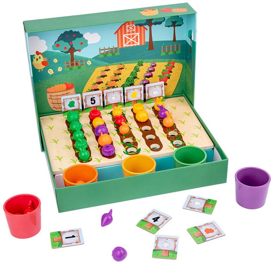 - 10 carduri cu semne de gradina pentru culori, numere și legume,