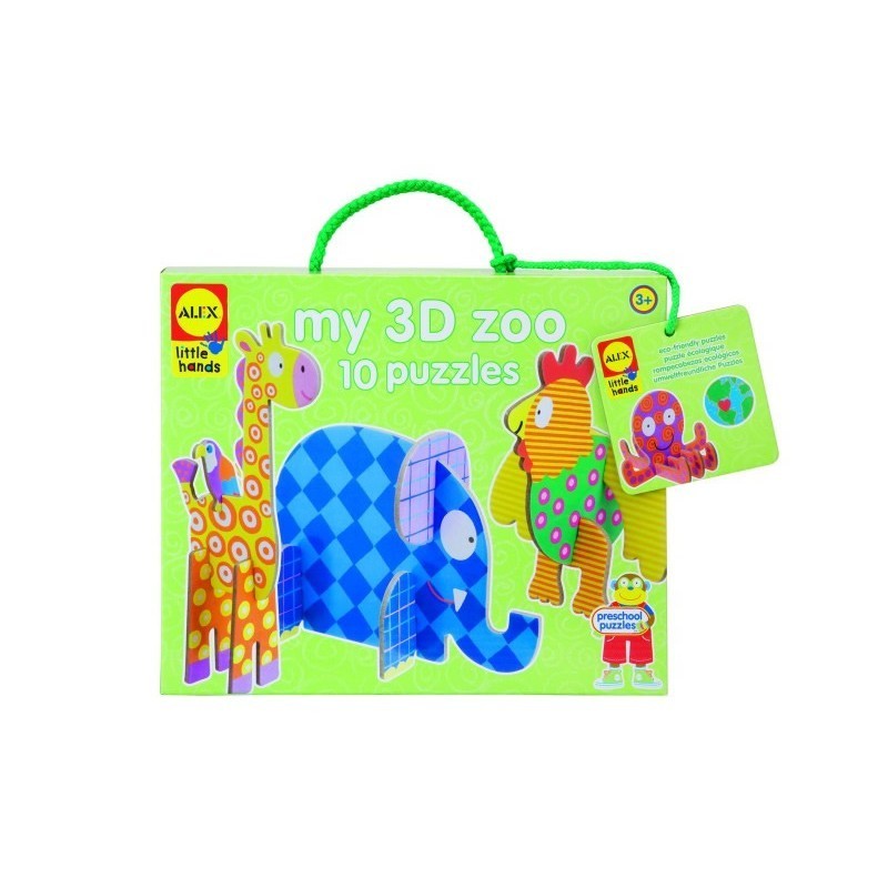 Creeaza-ti propria gradina zoologica 3D din piesele mari si groase de carton rezistent - o vacuta, o gaina, o girafa, un elefant, o caracatita - in total 10 aimale haioase.