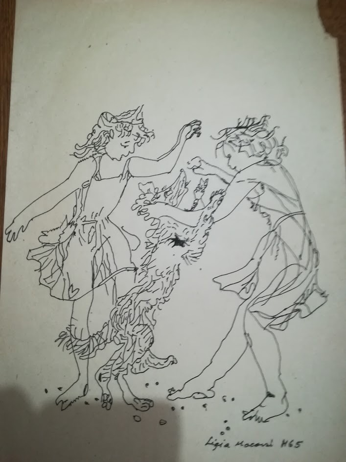 Grafică tuș pe hârtie Ligia Macovei 1965, 30x21 cm