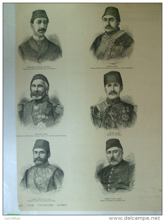 Grafica 1877 The Graphic ofiteri turci Dunare Muntenegru Albania Asia marina