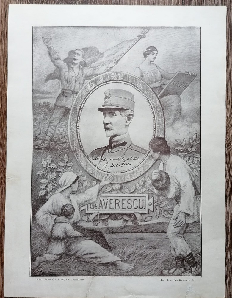 Gravura afis alegorie generalul Averescu