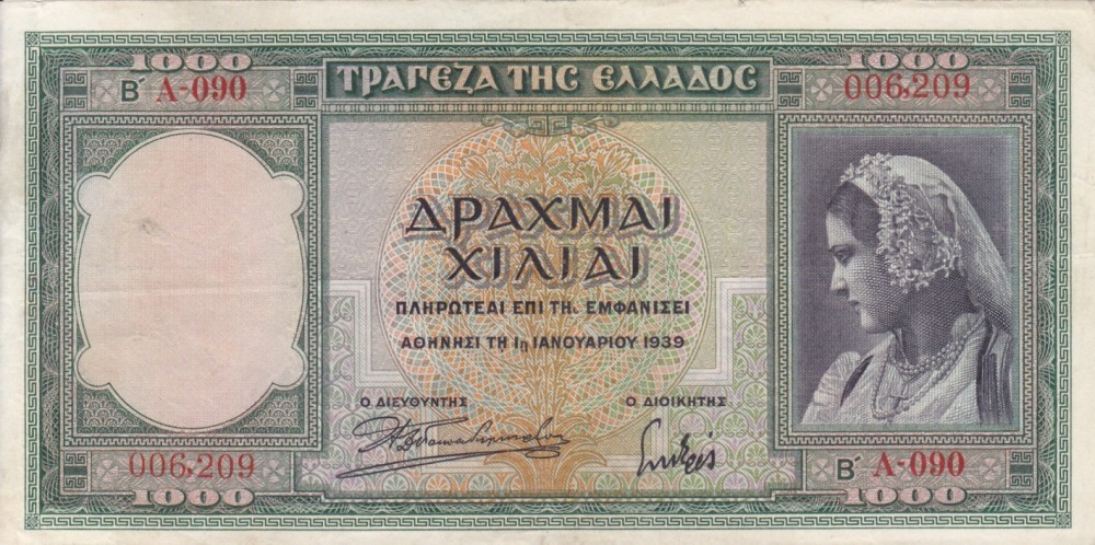 GRECIA 1.000 drahme 1939 VF/VF+!!!