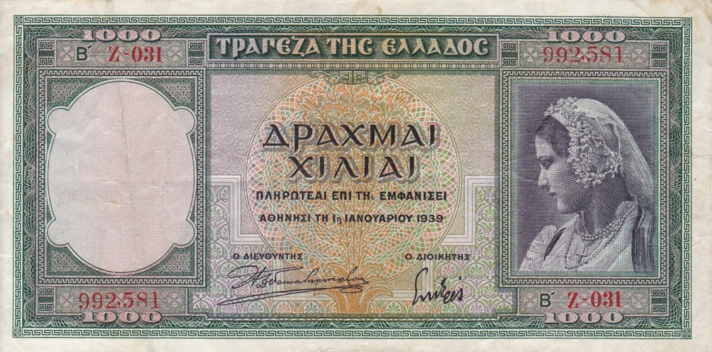GRECIA 1.000 drahme 1939 VF/VF+!!!