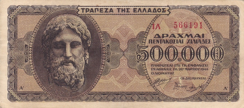 GRECIA 500.000 drahme 1944 VF+!!!