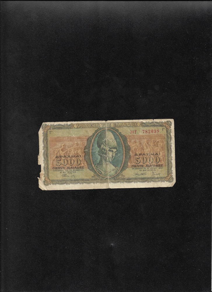 Grecia 5000 drahme drachmai 1943 seria782038 uzata