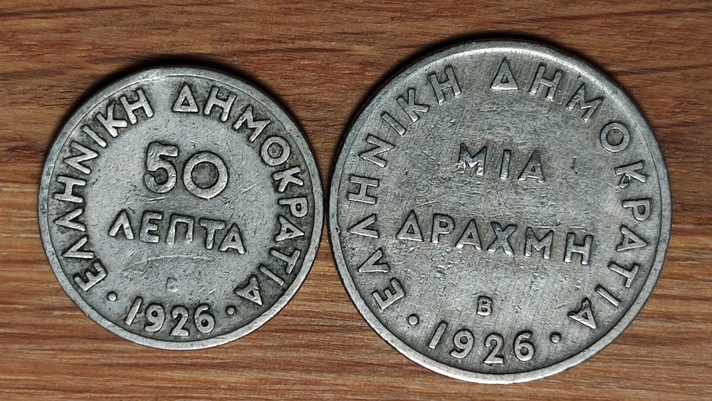 Grecia - set de colectie istoric - 50 lepta + 1 drahma / drachme 1926 - litera B