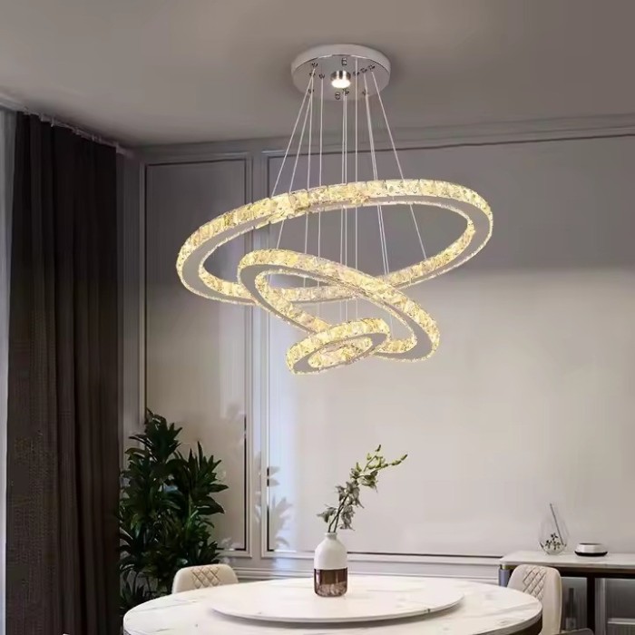 Greelustr Candelabru led HQ-246-W, candelabru modern de sufragerie din cristal cu 3 setari lumini, pandantiv nordic, 3 segmente cerc