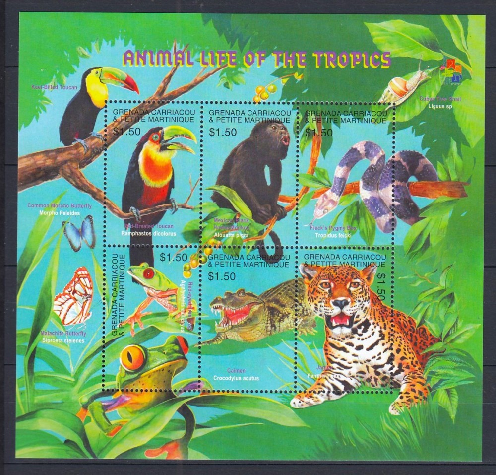 Grenada Carricaou - FAUNA TROPICALA - BL - MNH