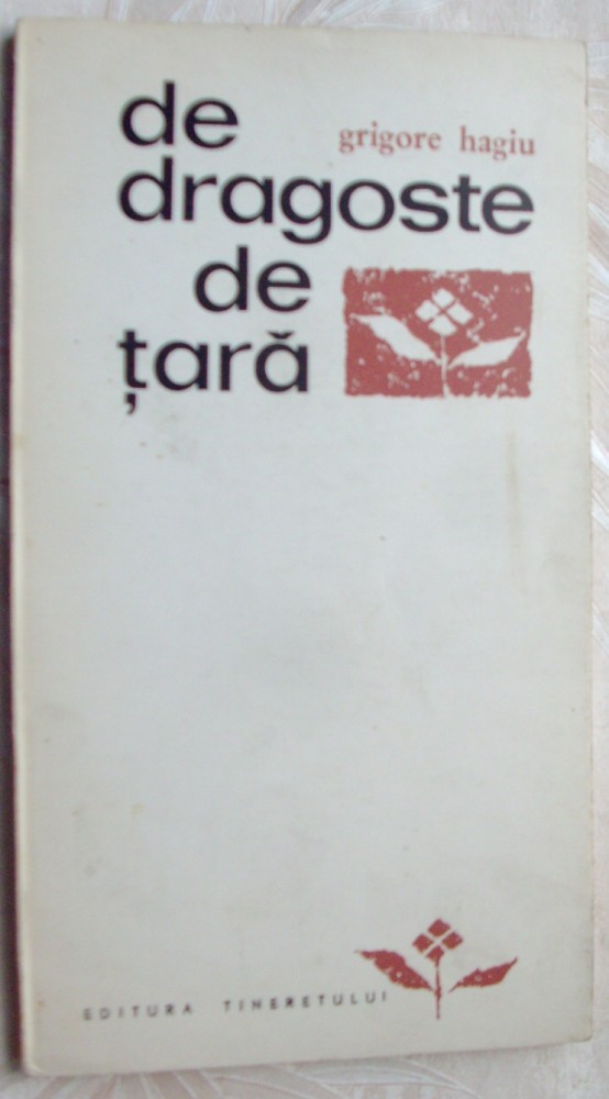 GRIGORE HAGIU - DE DRAGOSTE DE TARA: VERSURI, ed princeps 1967/coperta D. RISTEA