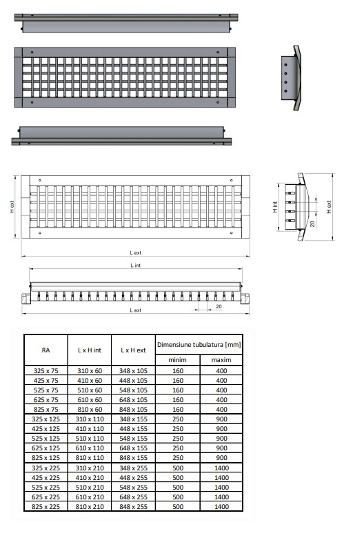 Grila RA este o grilă rectangulară concepută special pentru a fi montată longitudinal pe tubulatura circulară rigidă. Produsul este esențial în sistemele de ventilație și climatizare, fiind utilizat cu succes atât pentru introducerea, cât și pentru evacuarea aerului.