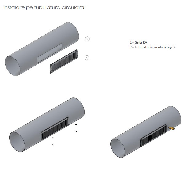 Instalarea se face longitudinal, direct pe tubulatura circulară rigidă, iar fixarea se realizează prin intermediul șuruburilor.