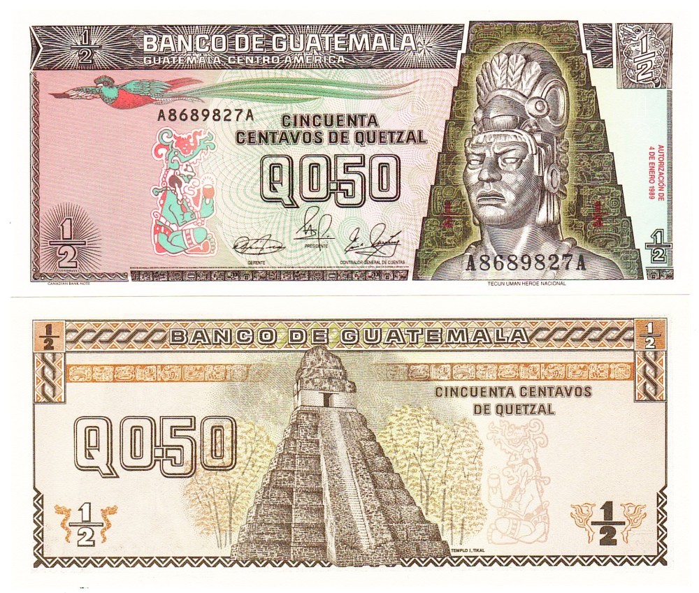 Guatemala 0,5 Quetzal 1989 P-72a UNC Tecun Uman