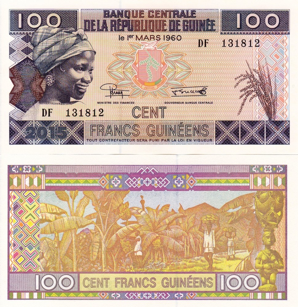 GUINEEA 100 francs guineens 2015 UNC!!!