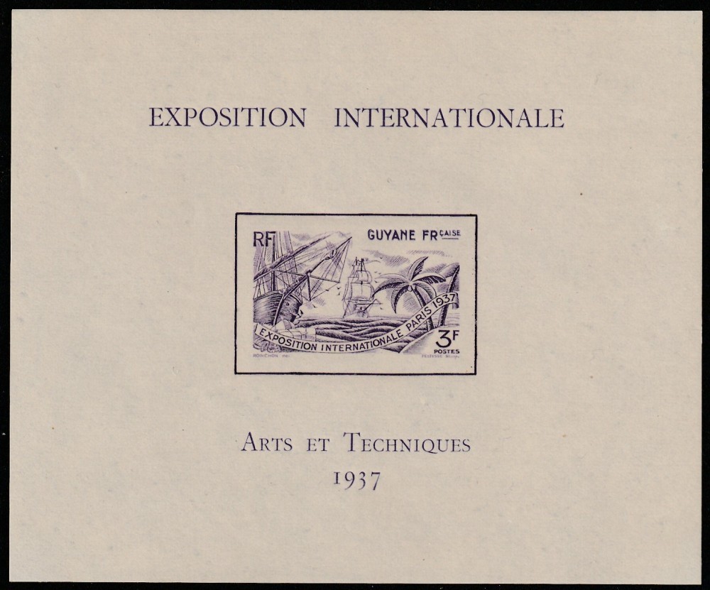 Guyana Colonii franceze 1937 - Omnibuse , Expozitia Mondiala Paris , colita nedantelata , MNH , Mi.176
