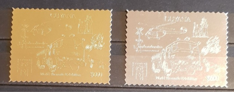 GUYANA TRANSPORT-ELICOPTERE 2 VALORI AUR SI ARGINT MNH