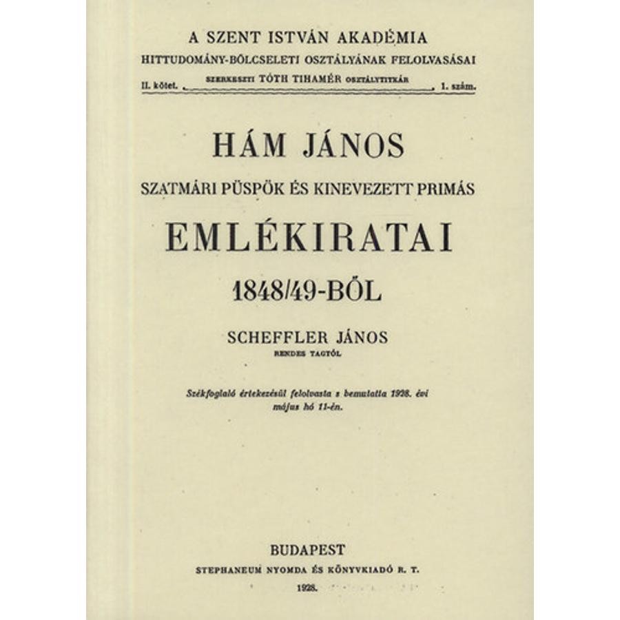 Hám János szatmári püspök és kinevezett primás emlékiratai 1848/49-ből - Scheffler János