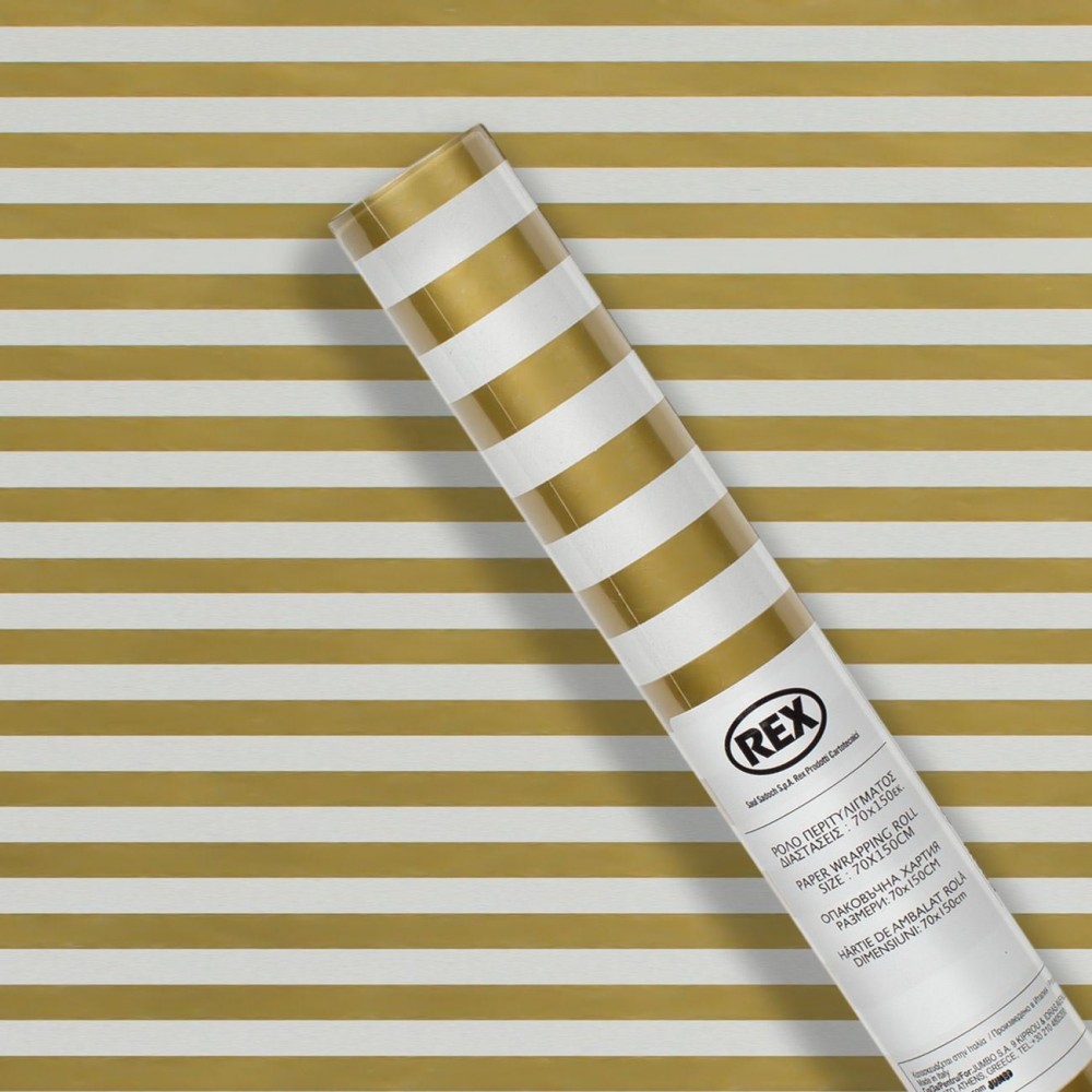 Hârtie Ambalaj Rex, Alb cu Dungi Aurii, 150x70cm