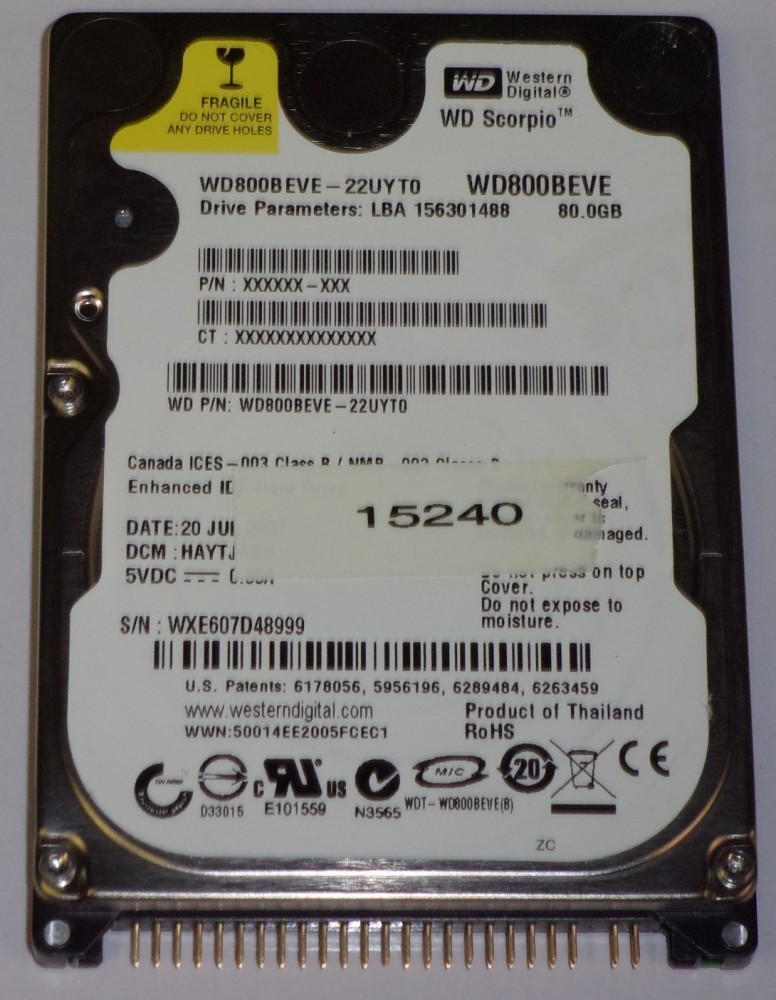 HARD DISK IDE HDD LAPTOP IDE HDD 2.5NOTEBOOK 80 GB ATA WD WD800BEVE